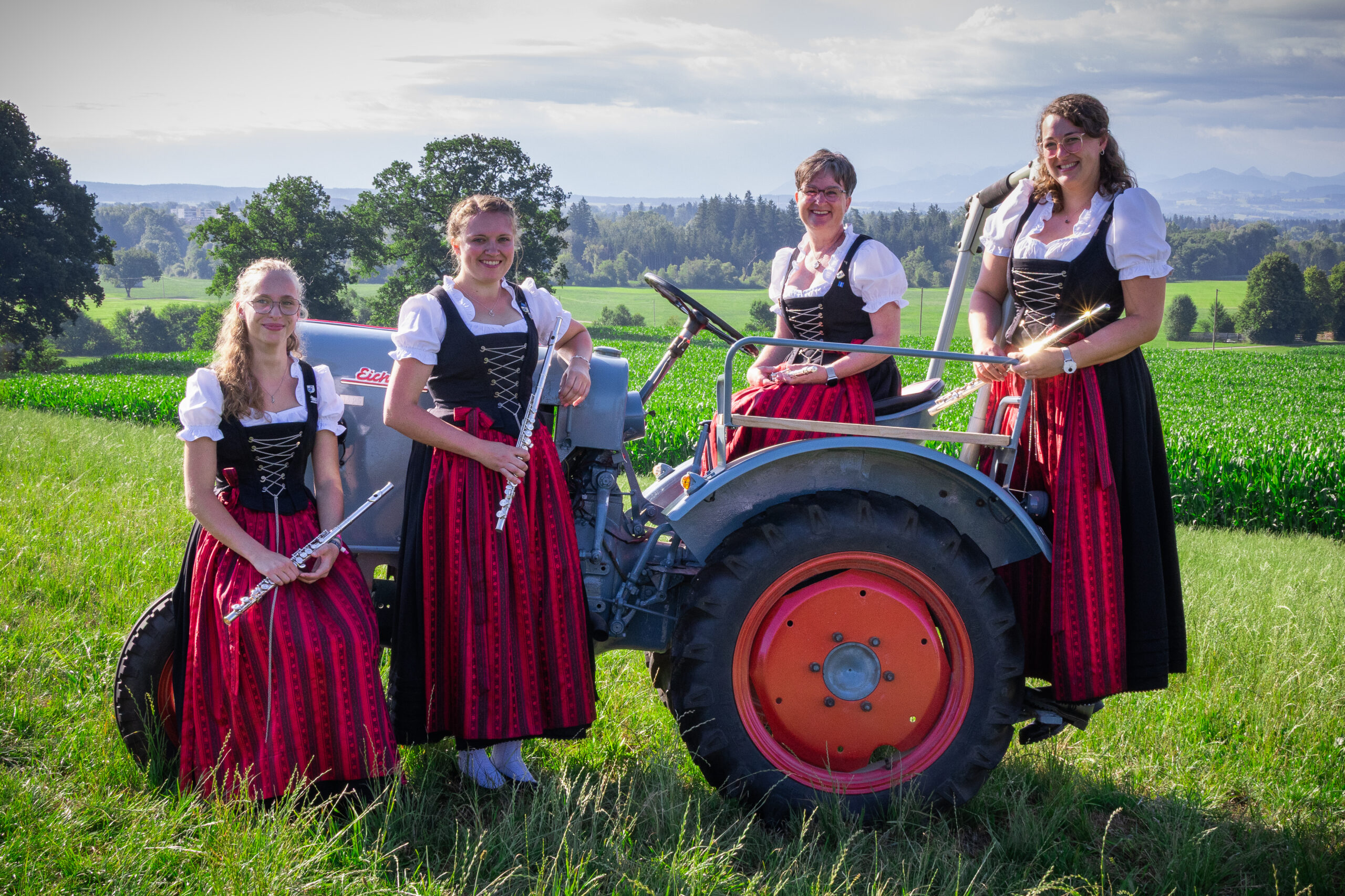 hinten von links: Matthias Waibel, Fabian Krattenmacher (& E-Bass), Franziska Haneberg (& Gesang), Hubert Baldauf, Dominik Baldauf